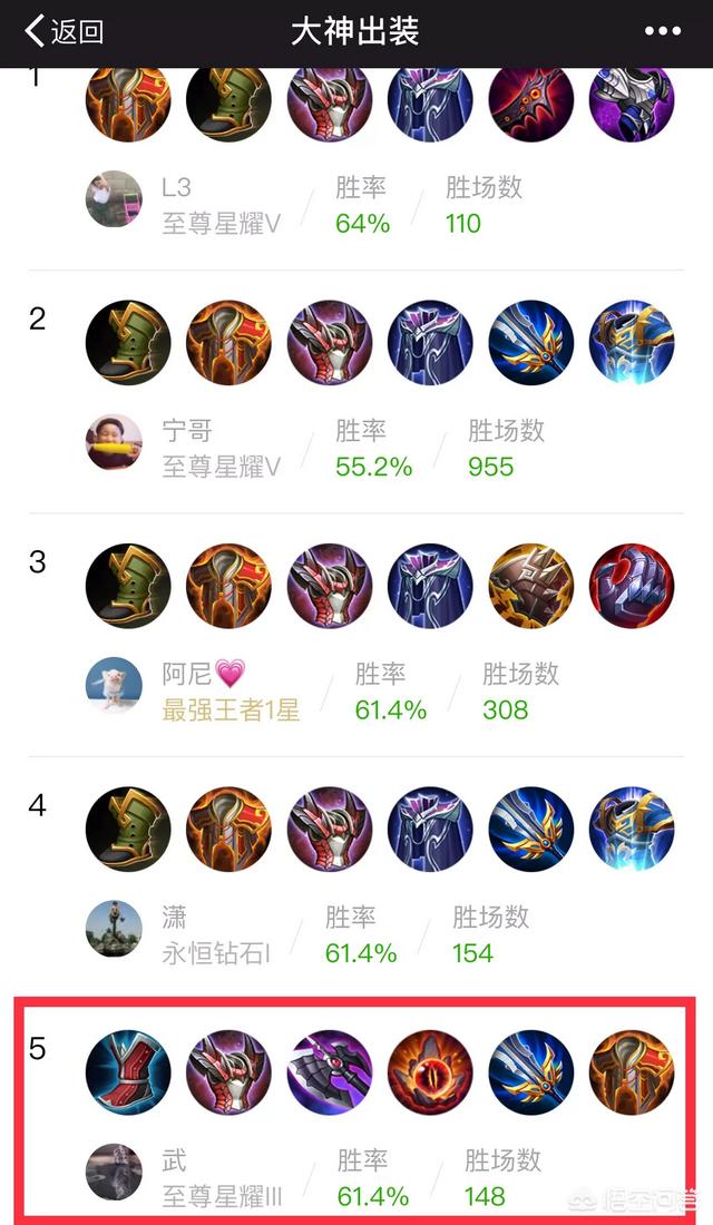 最后给出我典单排出装,天美定位为大神出装,胜率并列第二,排第五出装。因为我不是车队,大号全单排上分,如果刷下就上前三了。(出装打法铭文前面问答都有)
