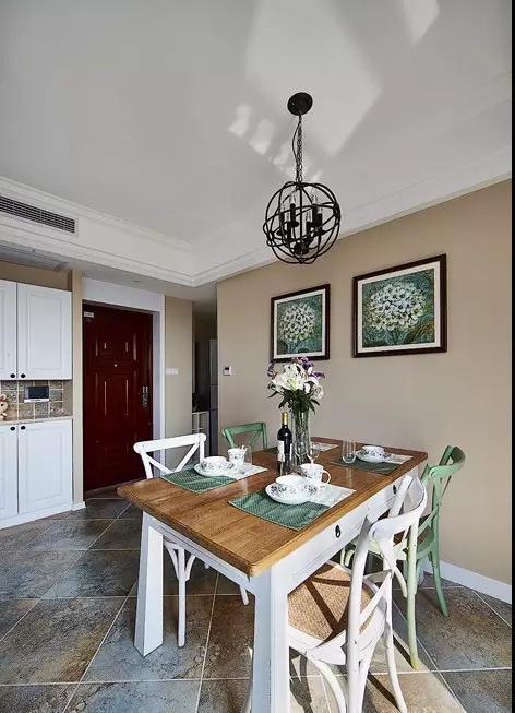 ▲ 餐厅区背景墙就用一组装饰画点缀,四人小餐桌有点田园乡村味。