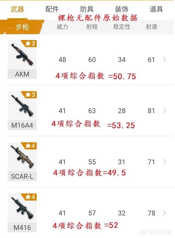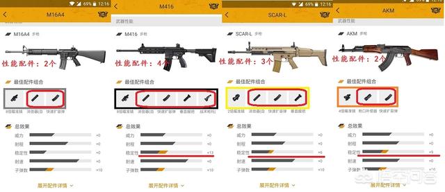 - M416胜出,可加强性能空间大!且影响枪械性能配件多达4个!