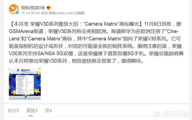 其中有关消息表示Camera Matrix可能将运用于荣耀V30的相机设计或技术,其更多消息则尚不知晓。