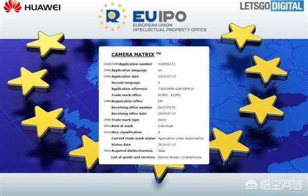 据荷兰科技博客爆料称,华为近日向欧盟知识产权局申请注册“Cine-Lens”和“Camera Matrix”商标,其中Cine-Lens为华为Mate 30 Pro上电影所采取的镜头,Camera Matrix系属荣耀V30系列。