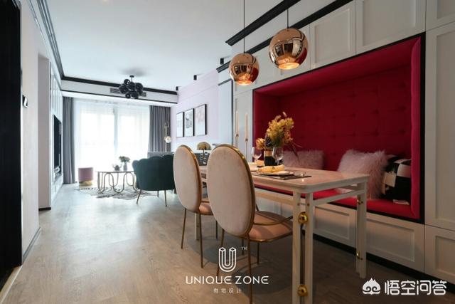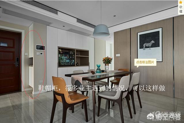 在入户的左手或者右手空间最大的一个地方做一排鞋帽柜。一般入户没有独立悬挂的他的一入户,见到差不多就是餐厅。所以我们可以把鞋帽柜结合餐边柜,看图