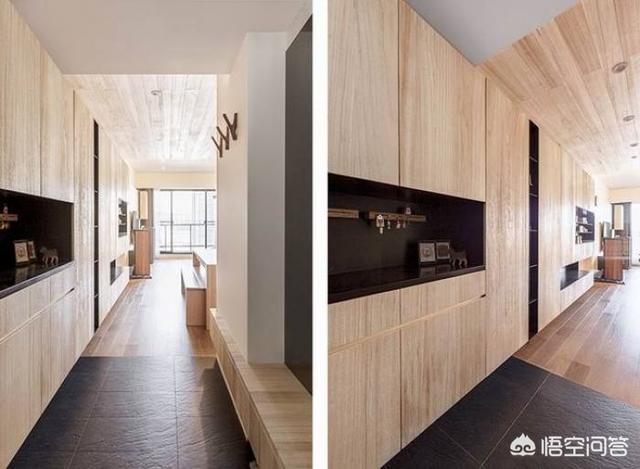 所以说如果入户没有足够的空间,做独立的玄关,那么一定不要做一些隔断什么的,一定要利用现有的空间结合餐厅结合入户的鞋帽柜做一个好的处理。