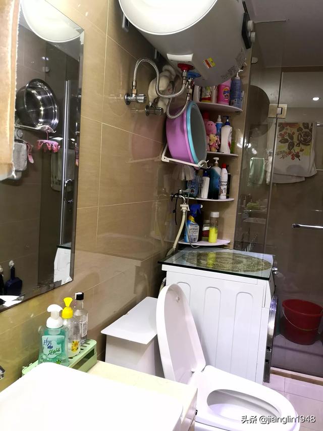 一个淋浴房1米,一个洗脸盆80厘米,建议再放个洗衣机