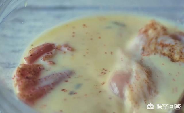 用炸粉加入鸡蛋,鸡肉提前腌制