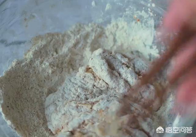 5.在剩余的腌料中加入50克面粉、50克玉米淀粉、1/4勺泡打粉混合均匀。
