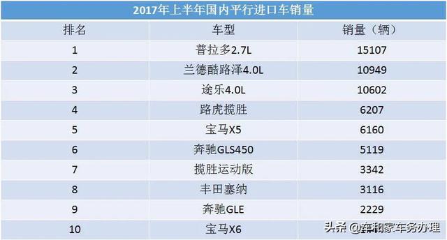 哪些平行进口车销量火爆? 想看看2017年上半年在国内平行进口车的销量表现如何,大咖了解到2017年上半年,全国平行进口车数量达到81649辆,同比增长49.7%,上半年累计占进口总量的14.1%。尽管去年进口车整体市场去库存压力较大,但在政府政策支持和部分厂商取消限制的带动下,平行进口车实现了强势增长