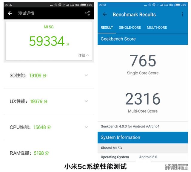 从测试结果看,这枚澎湃S1芯片的安兔兔跑分59334、GeekBench单核765分、多核2316分。比千元机中常见的联发科Helio P10要强上不少。但是又比近期的当红炸子鸡高通骁龙625弱那么一些。