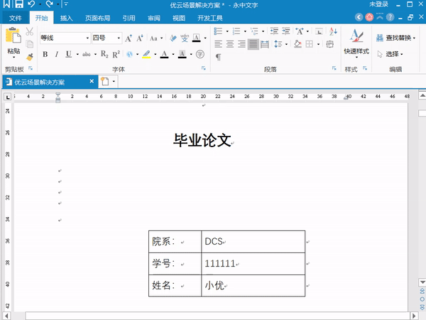 论文的封面就是论文的牌面,一般填写信息的时候总会遇见文字下划线长短不一的情况,这时候可以借用Word表格: