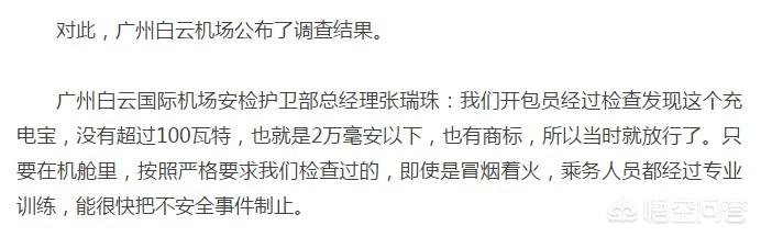 如果充电宝不符合民航总局的规定的话,那么这名旅客应该会有麻烦。现在充电宝鱼龙混杂,关于充电宝引发的火灾也比较多,比如1月20号。舟山的一名小伙子长期不拔电源线,导致充电宝自燃,造成了火灾,幸好没有人员伤亡。2017年12月南京也发生了类似事件。
