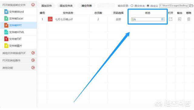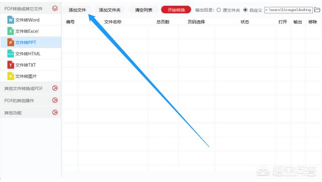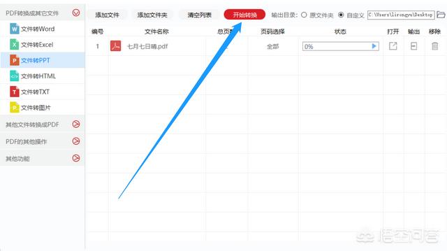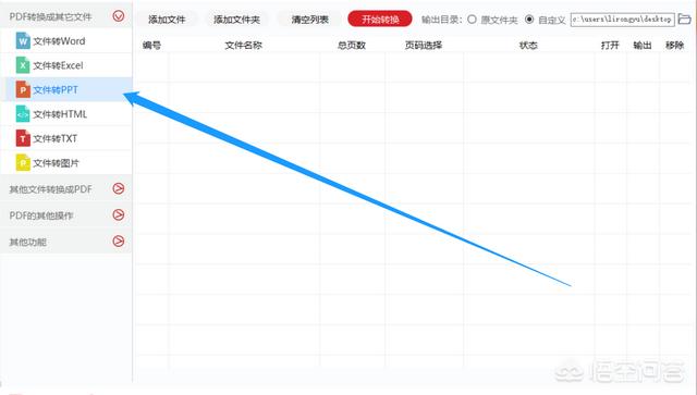 第一步,在左侧功能栏目选择pdf转成其他文件-文件转ppt。