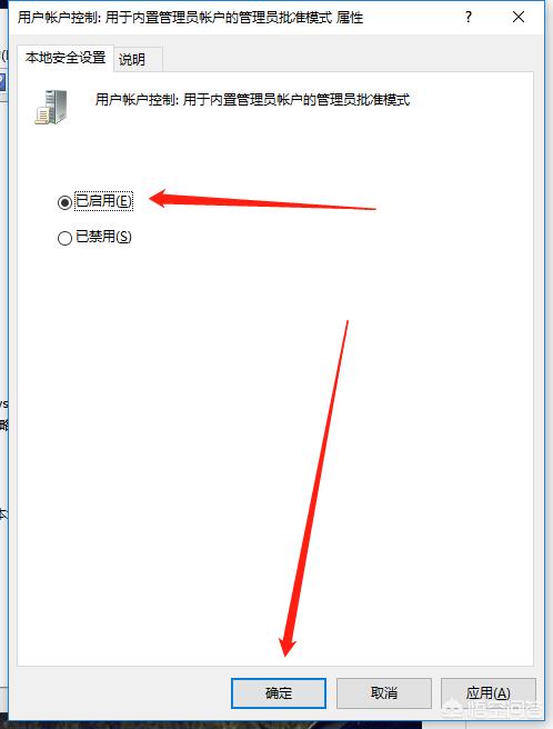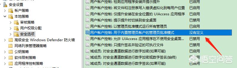3: 在安全选项,右侧找到并打开“用户帐户控制:用于内置管理员帐户的管理员批准模式”这一选项,如图