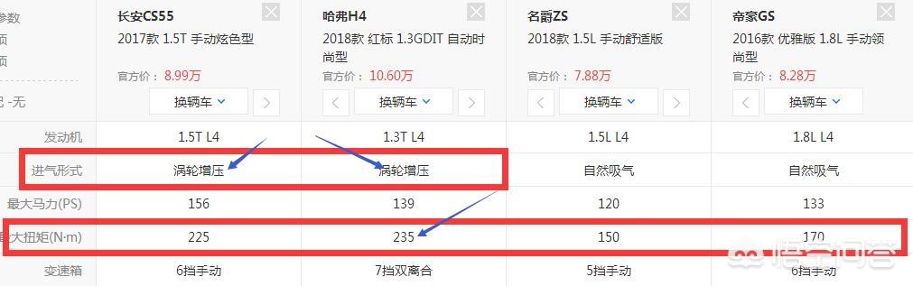 动力这块:CS55和H4都是采用涡轮增压,其它2款采用自然吸气,孰强孰弱一目了然,但是还是由预算来决定,题主自行定夺。