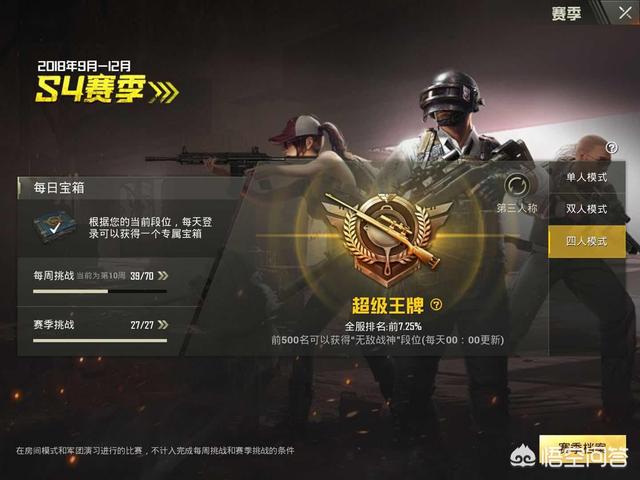 首先你们上分要明白和平精英的加分机制,不同榜单的加分机制是不一样的。其中最难的是第一人称单排,最简单的第三人称四排。