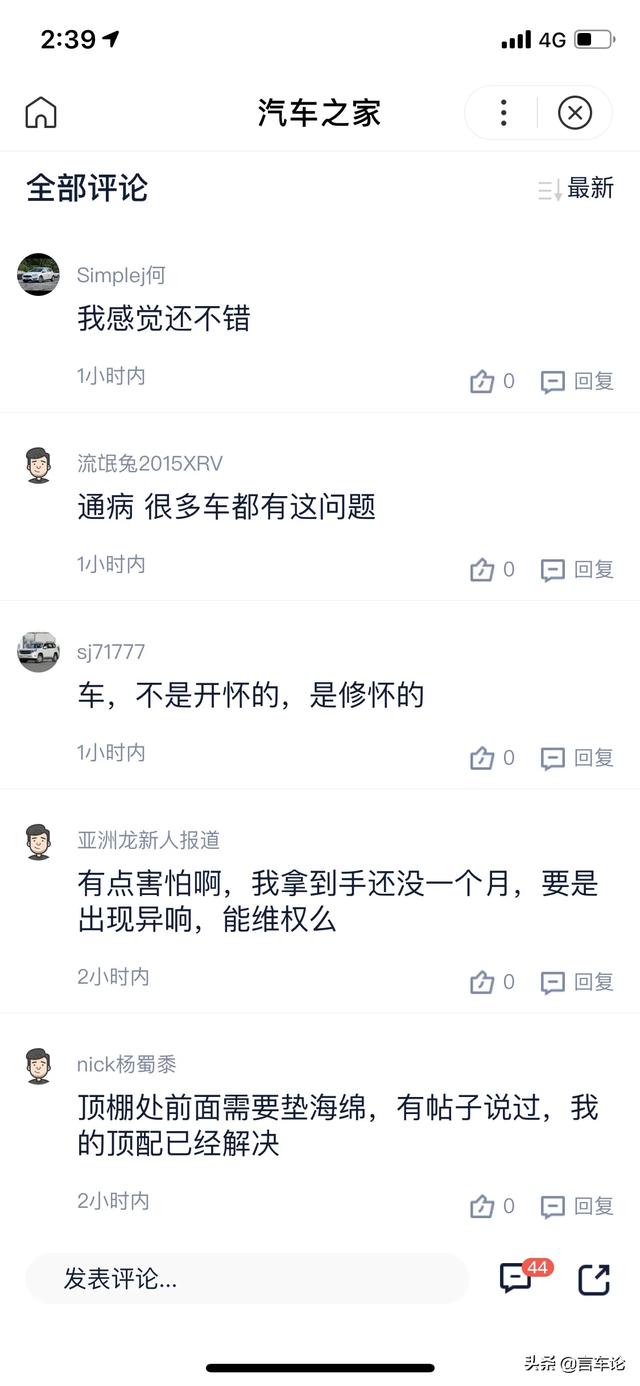 以上就是小编的简单回答了,希望给这位朋友一点儿安慰吧,异响是有一点儿让人头痛的,但是可以和车友们交流一下,是不是它是一个通病,如果不是的话,都好解决了。