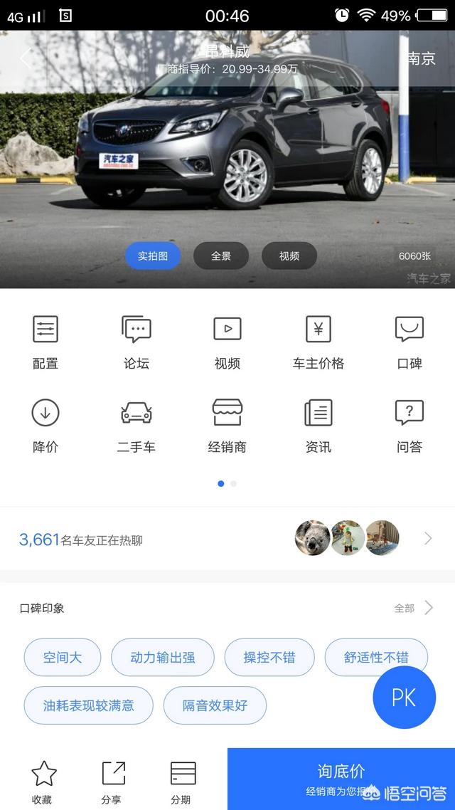 稳重的外观设计给人内敛踏实的感觉,优良的悬挂调教,强劲的动力表现,也是这个大家伙较为突出的地方!超大空间,几乎满足一家人的各种需求!简洁的内饰,细腻的做工,都是居家旅行的好手!7、别克昂科威