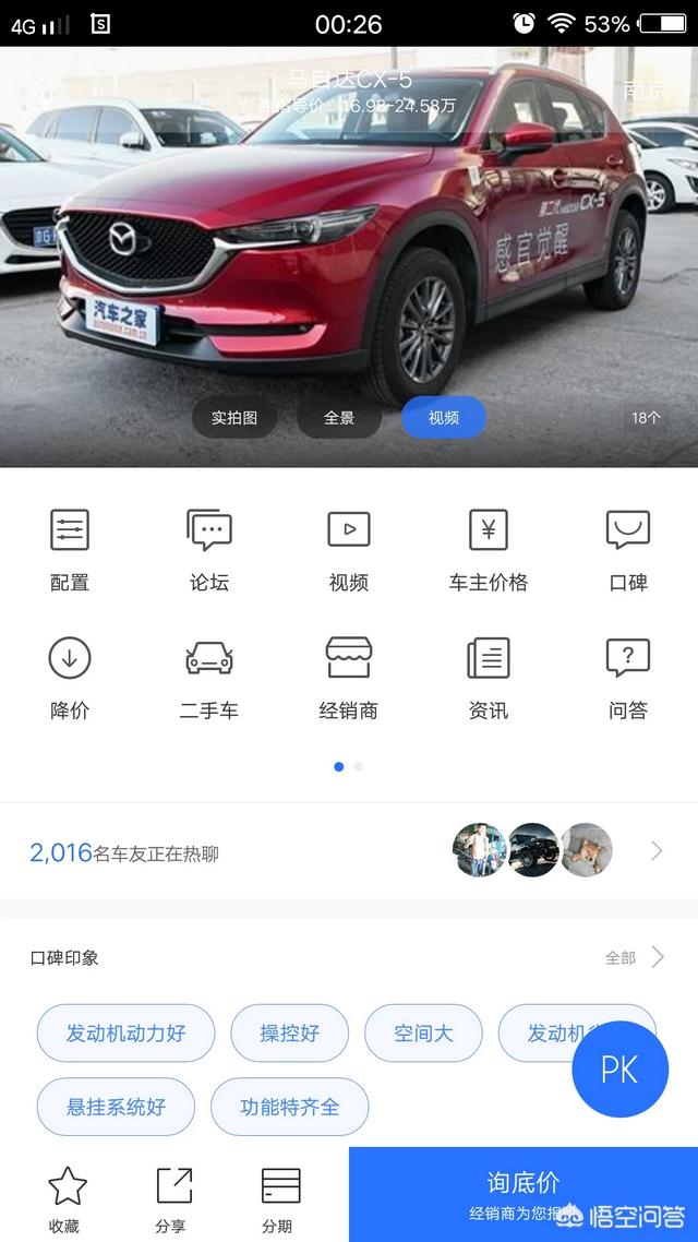 个性的进气格栅给原本大气的车身外观添分不少!扎实的底盘调教让原本稳重的车身,无论高速行驶还是越野旅行都安全感十足。同时,内饰做工精细,包裹性到位。大空间,高动力,优良的可操控性,都给这辆车添分不少!4、马自达cx-5