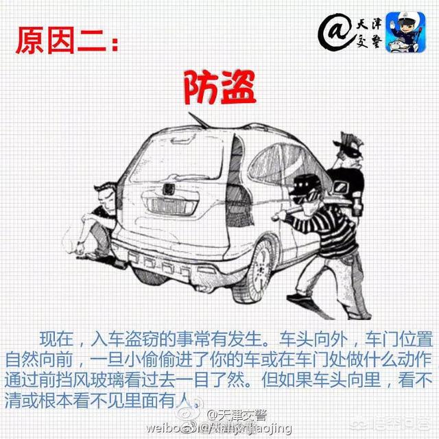 2,防贼,车头向里车门位置向前,一旦小偷做什么动作,通过前档风玻璃,能看清。