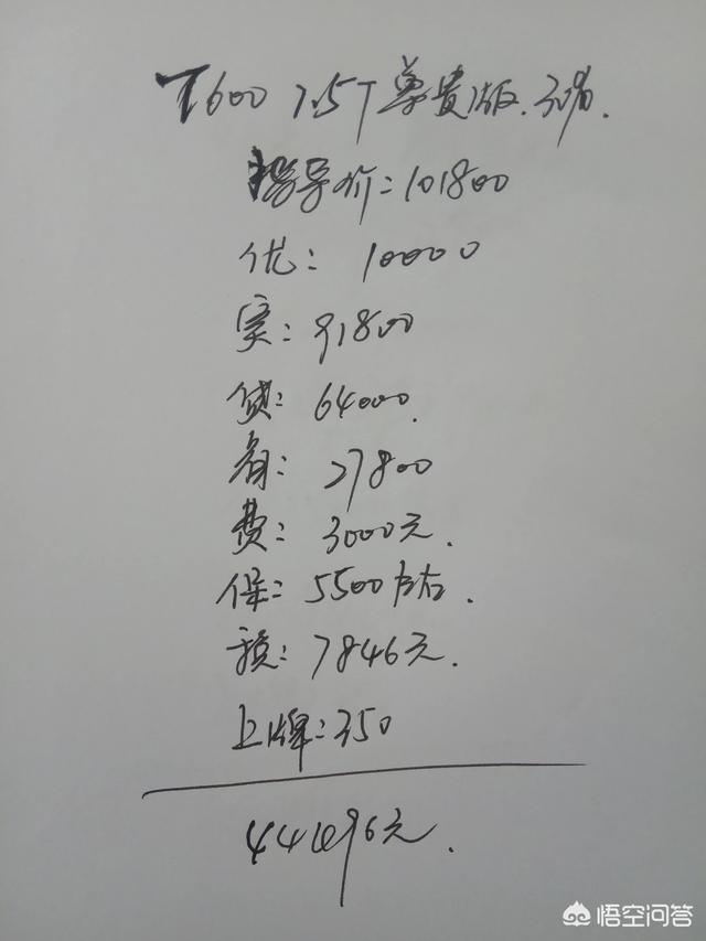 首先我们要确定裸车价格,这款车官方定价在120800元,我们按照120000进行计算。首先车款30%是36000元,交强险950元,车船使用税420元,上牌150元,贷款手续费2000-3000元,购置税10200元,商业保险贷款需要全险,按照5000元计算。这样总共落地需要55000元左右。