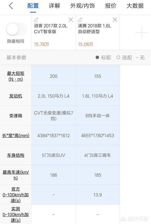 不过从车子的定位上看两者却不在同一个级别,速腾是定位在紧凑型家用轿车,而逍客是紧凑型SUV,两者还是有非常明显的区别的,不懂你是多喜欢轿车还是SUV多一点。