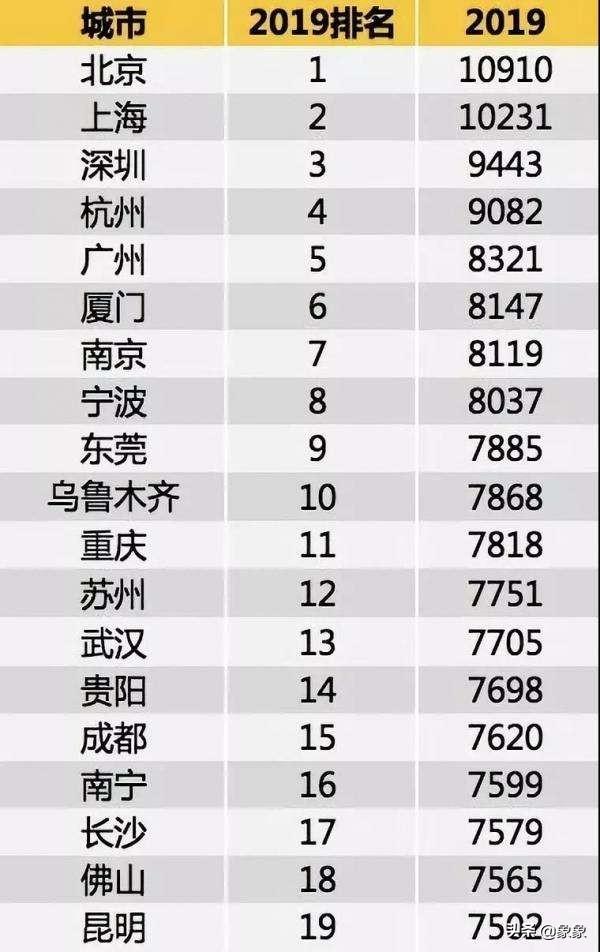 再看国内主要城市人均收入排名,月入五万已经步入中产,生活无虞