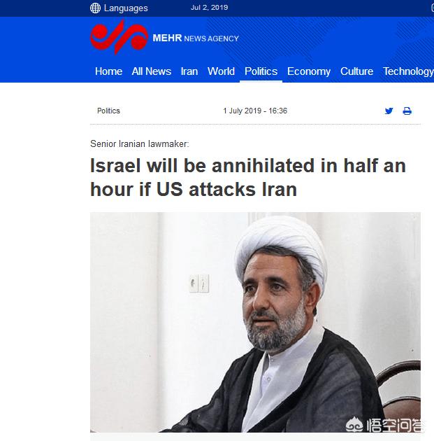 伊朗前总统内贾德就经常说:要把以色列从地球上抹掉,今年新上任的伊朗革命卫队总司令萨拉米在2019年4月21日表示,伊朗三天就能打垮以色列,这位总司令刚被哈梅内伊提拔为总司令还没有多久,所谓新官上任三把火,总要有点表示才行,否则会让下属们看轻,对于伊朗来说,最好表示就是向以色列开嘴炮,两个多月后的7月1日,伊朗国会核小组委员会主席左诺尔接力萨拉米,再次向以色列开嘴炮,他表示,如果开战,以色列的寿命只有90分钟。