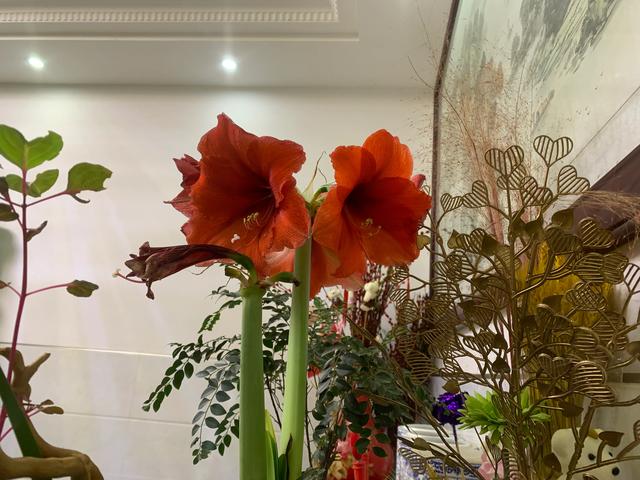 对于朱顶红来说,不同的品种不同对待。近两年我在花店买了一种球根上包了红蜡皮的朱顶红,花开娇艳。不用浇水不用晒太阳,摆放在客厅长台上养护,不断开花,年前开到现在。花谢后把花杆剪掉,把球根上的红蜡皮剥掉,种植在土壤里,跟其它品种一样种植养护即可。