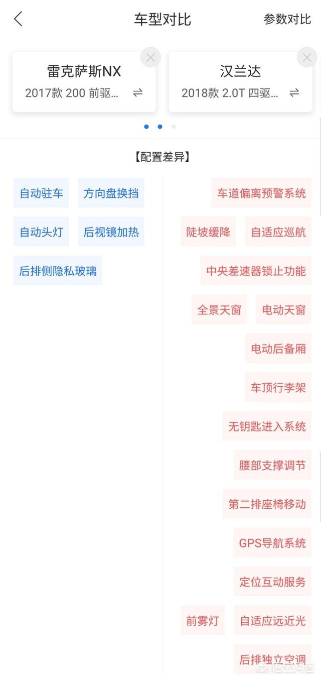 配置上NX简直是被完虐啊,汉兰达是次顶配车型,NX200是最低配车型,这个还用比吗,配置单基本都满了,从豪华配置到舒适配置到实用配置,应有尽有。