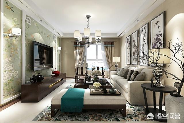 新中式风格可以说是中式风格+现代风格的产物,换个词也许大家会比较熟悉:中国风。新中式的设计内容里包含了五行元素(金木水火土),这是中式元素;琉璃璀璨的客厅吊顶,柔软舒适的布艺沙发又是象征现代时尚的元素,流行而简约,素雅而不俗。在造型上,新中式线条简单,古朴大方;在色彩上,多采用柔和的中性色,给人优雅温馨、自然脱俗的感觉。而在装饰材料方面,多选择壁纸、瓷砖等,将传统风韵与现代舒适感完美交融。