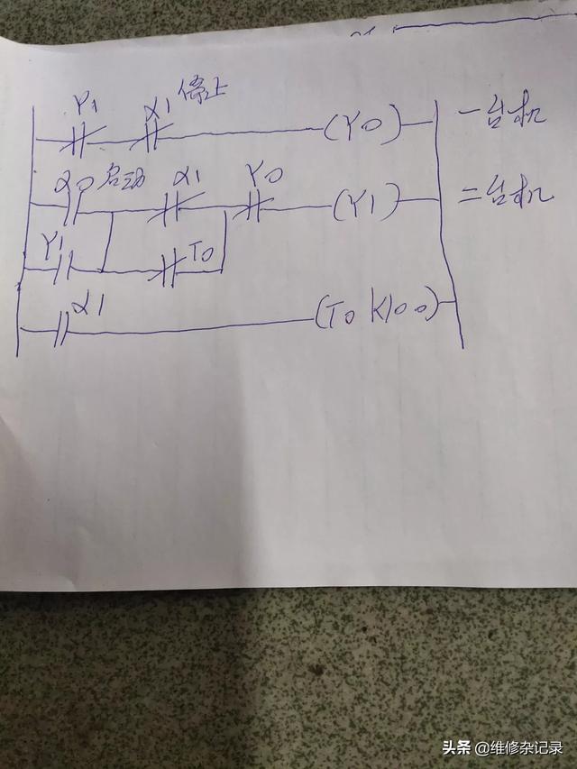 可以把程序设计好后,停止按钮都供外用一个输入点x0,但一定是转换开关,X1停止按,按一下启动二个电机,但只能运行到内部设定的时间
