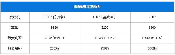 动力部分和现款一致,新款B级依旧提供1.6T和2.0T两个排量三款发动机可选,传动系统继续为7速双离合变速箱。