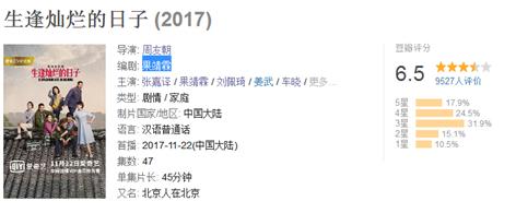 电视剧《生逢灿烂的日子》这部电视剧以北京小胡同里普通人家的悲喜故事为题材,一路演绎这户人家四兄弟从上世纪七十年代末一直到当下的人生历程。地道浓郁的京腔京韵,充满怀旧气息的时代印记,这样一部剧应该有一定的“观众缘”。据悉,刚刚开播,北京卫视的52城收视便破1,位列省级卫视黄金档收视第一。根据这个信息,一些娱乐媒体马上下结论认为,《生逢灿烂的日子》已经获得了口碑和收视的双丰收。
