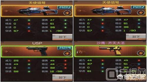 与USP相同,但是沙鹰齐天大圣由于子弹少,其他数值也要弱于天使猎弩,因此综合能力上跟天使猎弩差距较小。