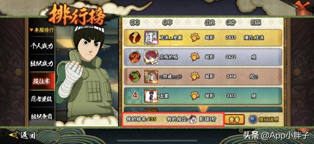 火影忍者手游里的影级段位,就像早期的暗部段位一样,现在基本上没有太大的门槛,只要有几个能看得过去的忍者,技术水准不算太差基本上都能够上影,今天恰好是月底段位赛阶段,我这个小影一在自己的服务器里连前一百都没进,看来真的是到了人均影级的时候了。另外,超影的数量也在逐渐增加,无论是代练还是自己的技术水准,起码是证明了现在的人均段位标准正在快速提升。