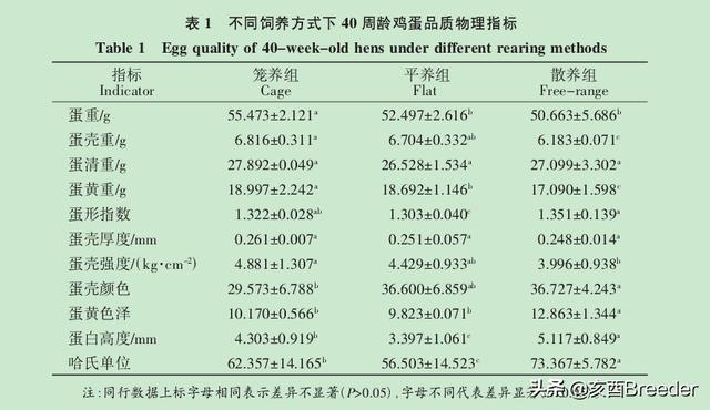 一、不同饲养方式对鸡蛋蛋品质的影响