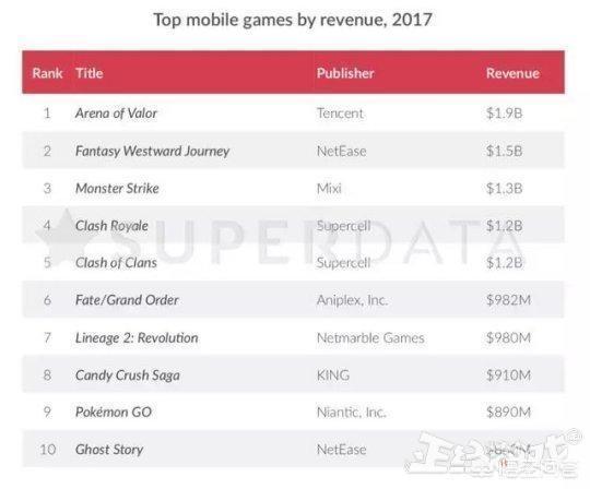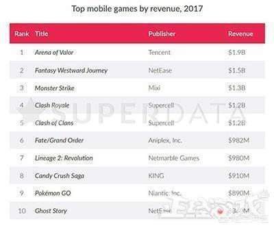 和之前的几个游戏相比,《倩女幽魂手游》虽然是比较知名的一个,但是关于该游戏的营收信息却没有多少。然而在数据网站SuperData发布了2017年游戏市场收入规模数据报告中,《倩女幽魂手游》却成为了榜单前十中的第三个国产游戏。