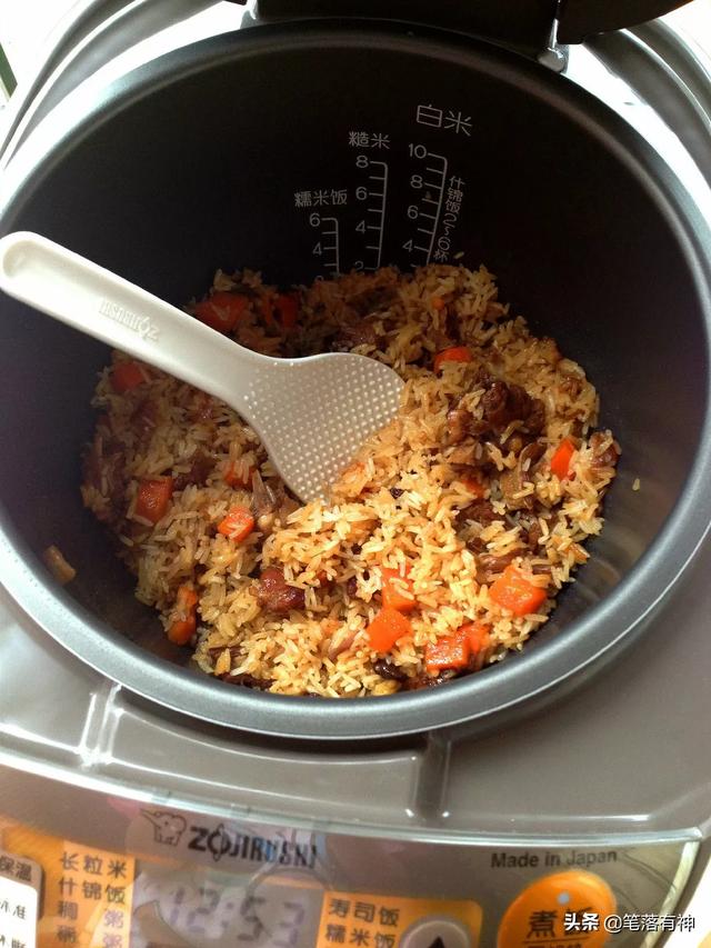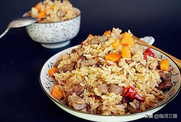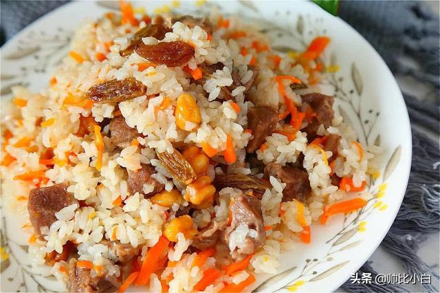 主料:大米、羊肉、胡萝卜; 辅料:洋葱、花椒; 调料:盐、酱油