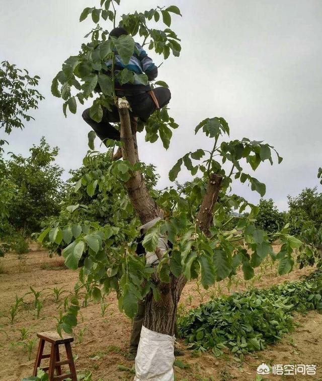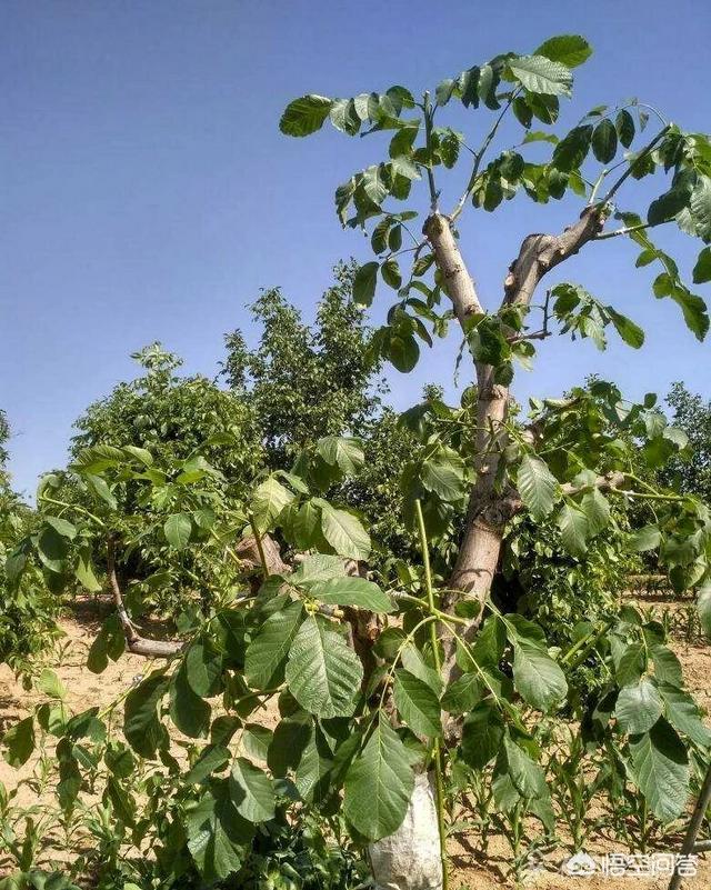 大核桃树嫁接方法去弱枝留壮枝一舟殳在清明前树留动开始橡接方法是十厘.米以上去掉保留六公分的主枝到三公1分然后劈一字式十字“式刀口小枝留两木支大枝留四个然后越紧越好包好后用专用袋晕上俣温成.活卒很高