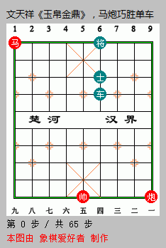 象棋作为我国的文化瑰宝,有着悠久的历史和传承。早在战国时期,《楚辞》中便有“蓖蔽象棋,有六簿些;曹并进,遒相迫些;成枭而牟,呼五白些”等相关记载。到了秦汉,出现了“格五”的棋戏。到了北周,已有相关的理论著作,如流传下来的有《象戏经序》、《进象经赋表》、《象戏赋》等三篇“象经”。到了唐朝,已出现了有“将、马、车、卒”的象棋。现代的中国象棋是宋代最终确定下来的,即红黑双方都有16个棋子,每一方都有5个兵卒、车马炮士相各2个、将帅各1个,宋代古籍《事林广记》记载了最早的象棋棋谱,宋代的李清照、文天祥等名人都非常喜欢下象棋。尤其是爱国将领、爱国诗人文天祥,据说著有不少残局作品,流传下来的《玉帛金鼎》据说就是出自文天祥之手。