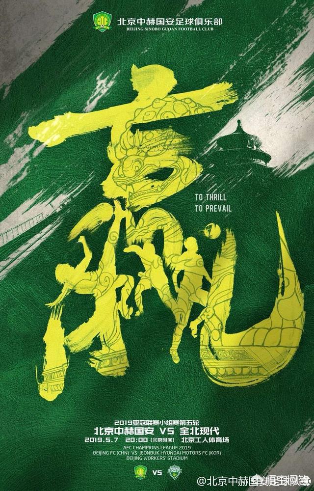 北京时间5月7日晚20:00,2019年亚冠小组赛第5轮G组的一场焦点大战将在北京工人体育场进行,中超“领头羊”北京国安坐镇主场迎战K联赛“领头羊”全北现代。两支球队在亚冠小组赛首回合的较量中,全北主场3:1击败了北京国安。