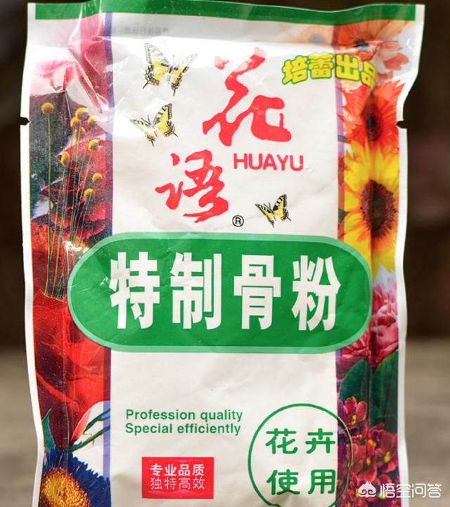 骨粉主要补充磷钾肥,也是为后期开花提供养分的,骨粉可以用于浇水,也可以与土搅拌提高土壤的磷钾肥比例。市面上常见的骨粉是培蕾出品的,一般一块钱一包,属于非常省钱的一种肥料