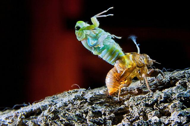 交配后的雌蝉会在数日后开始产卵,至于雄蝉,“风流”过后就死掉了,真的是“牡丹花下死”啊!雌蝉用针状产卵器将受精卵缠在树皮的缝隙间,夏季的温度高,很快便会孵化,幼虫直接落到地面,本能地打洞钻入地下,开始长达数年的幼虫生活。又是一轮生命的巡回……