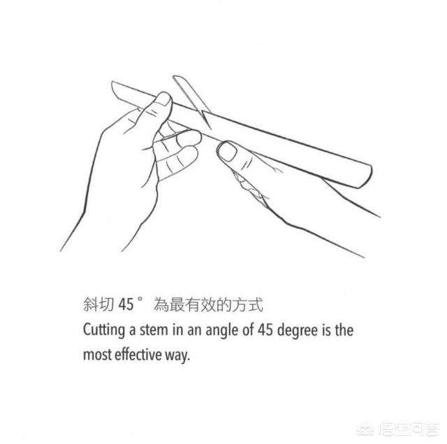 2、 一般常见的说法是剪刀修剪花根时倾斜45度角,这样的吸水性更好,而使用花刀可以削任意剖面角度,削出来的剖面吸水性会更强。