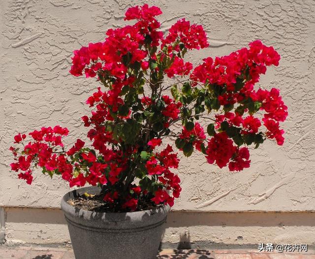 给它配置好的土壤,前期养分供应充足,透气性透水性好了以后,根系才能够在盆土里边快速的蔓延,快速的生长,快速的长满盆。根系长满了以后,它去生长枝条或者是开花的话,就会能够更加的快速。三角梅配置好的土壤是前提条件,再一个就是要给它见充足的光照,光照不充足,枝条长得长不开花,一定要给它见充足的光照,哪怕是夏季,也要把它放到光照最充足的地方去,再去给它保证一定的通风,只要生长季节一个月给它2~3次的肥料补充着,尽可能选择磷钾含量高的肥料,浇水的原则就是盆土表干下去一两公分给它浇透水,你养的三角梅绝对能够养得好,开花爆盆,一点也不会出现烂根的情况。