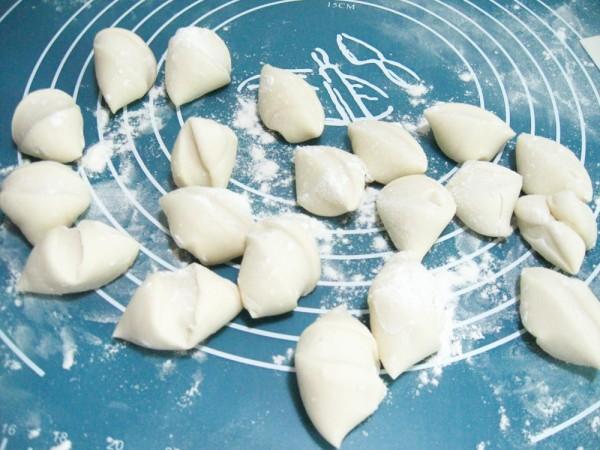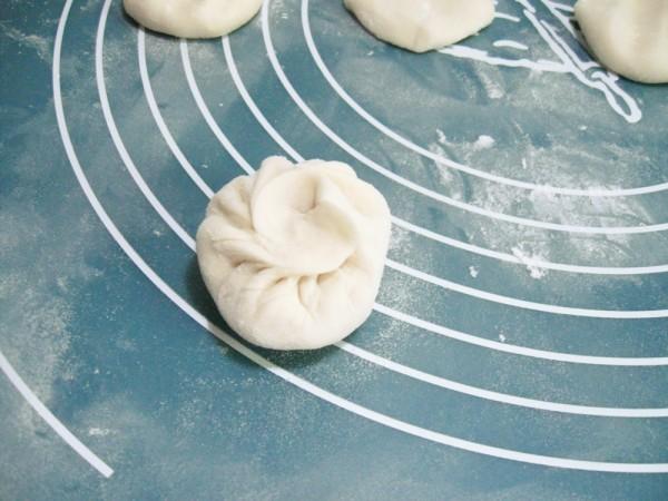 6.擀成中间稍厚四周薄的面皮儿,包入皮冻馅
