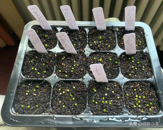 2、土要排水良好的土,播种用土不要太肥,不要用种菜的土也不要用花坛里的土,我用的是碎赤玉土,以前也用过泥炭加珍珠艳,没有条件的话用沙子也可以,但是3个月后要移栽。、