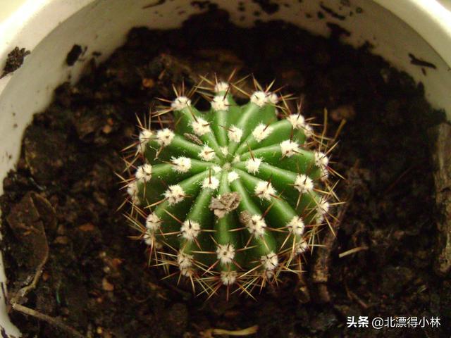 其实仙人球生长缓慢,对肥料需求不大,但是需要持续供应,所以使用颗粒的复合型缓释肥给中、小苗施肥是最合适的。食用其他的肥料,很有可能由于用量操作不当而造成烧苗、烧根。缓释肥施肥的操作也特别简单,就像上图那样,那黄色的小颗粒就是缓释肥,撒几粒放到苗子中间的土壤上面就可以了,会慢慢释放肥力到土壤里去的。