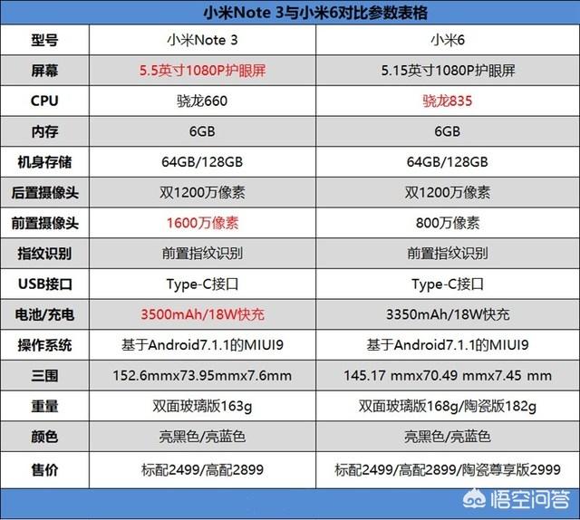 根据他们官网的配置看,差距并不大!可是你仔细看,他们的CPU确实差距很大,玩游戏可以感觉的到。平时使用并不差别。小米NOTE3主打是拍照,特别是自拍,小米6主打是娱乐,偶尔玩个游戏。根据你自己的需求购买。