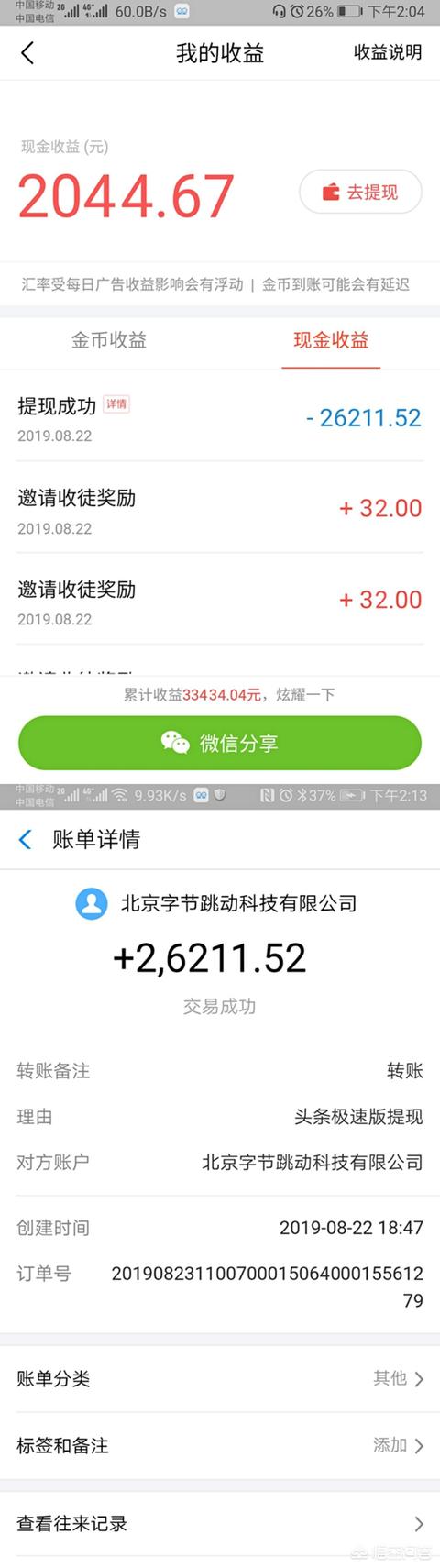 红包可立即提现,我已经赚了33434.04元。