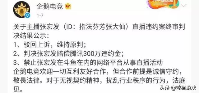 在第企鹅电竞违约之后,具体处罚看上图!大仙就签约了斗鱼,由于大仙保持一年一签约,在今年八月份左右,合约估计到期,到时可签约其他平台,前段时间大仙在B站出现,并且在B站的粉丝也不少,网友也是猜测大仙可能会在B站直播,但是一直未能有一个确切的消息!